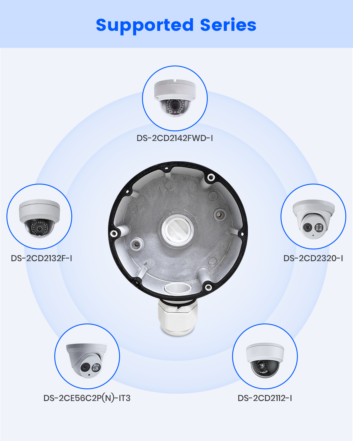 - Compatible con cámaras HIK: compatible con DS-2CD2142FWD-I, DS-2CD2132F-I, DS-2CD2122FWD-IS, DS-2CD2155FWD-I, DS-2CD2742FWD-IZS y otros modelos populares de domo y torreta Hik.