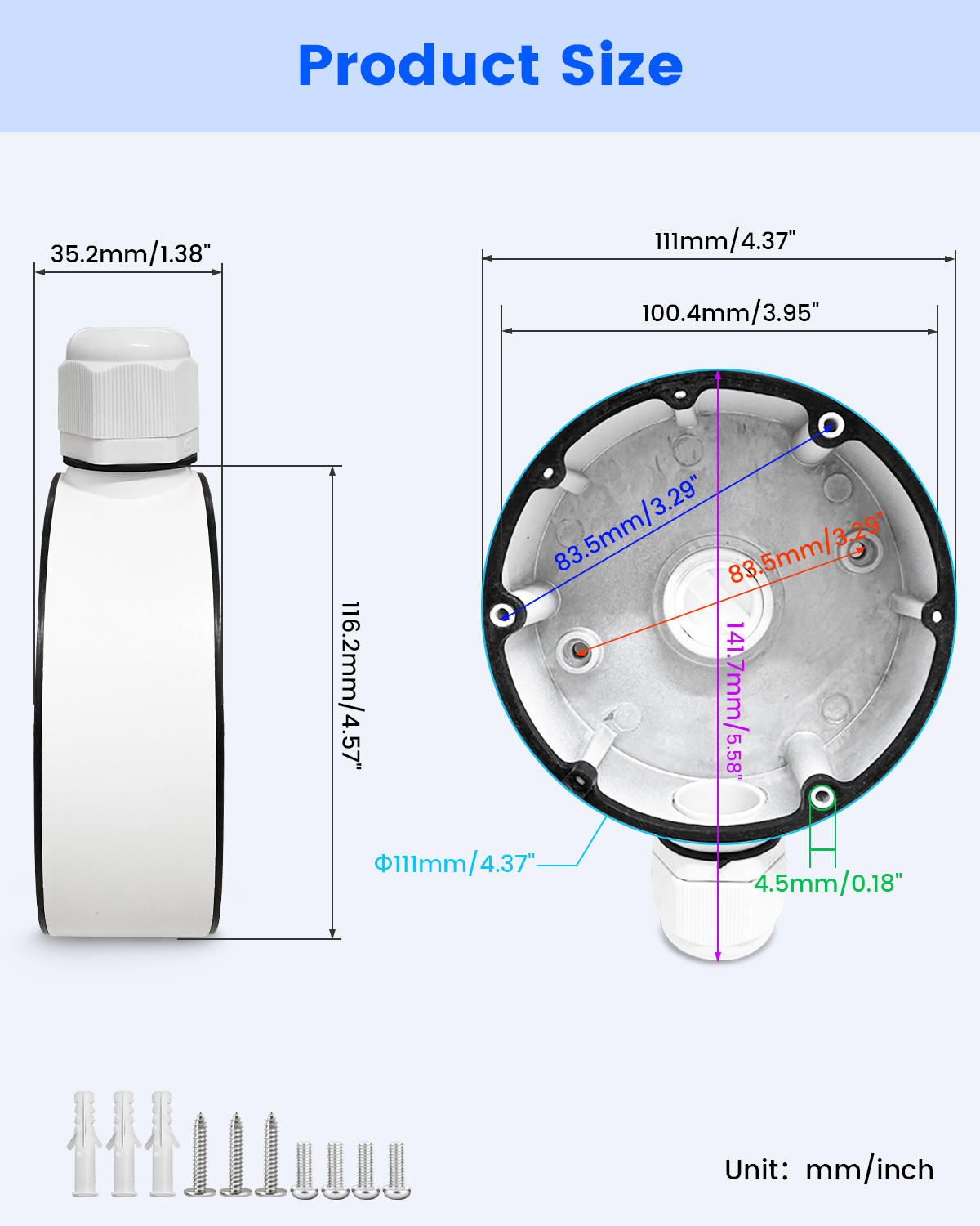 Nota: Asegúrese de que el tamaño de su cámara y la disposición de montaje coincidan con este soporte. Ideal para modelos domo Hik. Consulte las fotos del anuncio para ver las dimensiones.