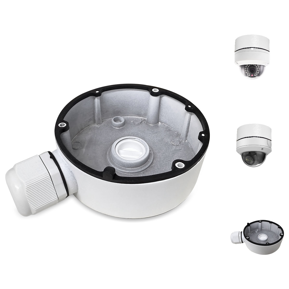 【KU-DS-1280ZJ-DM18】 Soporte de montaje en caja de conexiones metálica impermeable para cámaras de seguridad IP domo HIK, color blanco