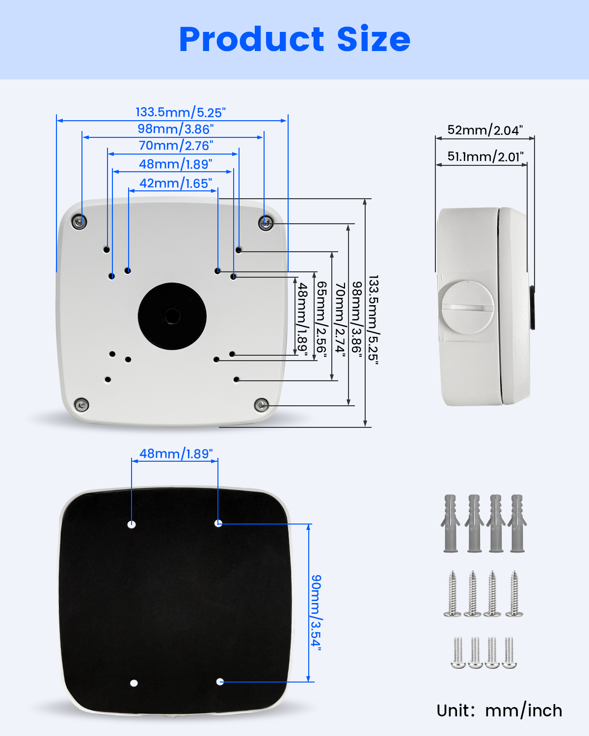 Instalación sencilla: La caja de conexiones para cámaras de seguridad incluye los accesorios de montaje necesarios, lo que facilita su instalación. Asegure sus cámaras fácilmente y mejore su cobertura de vigilancia con confianza.
