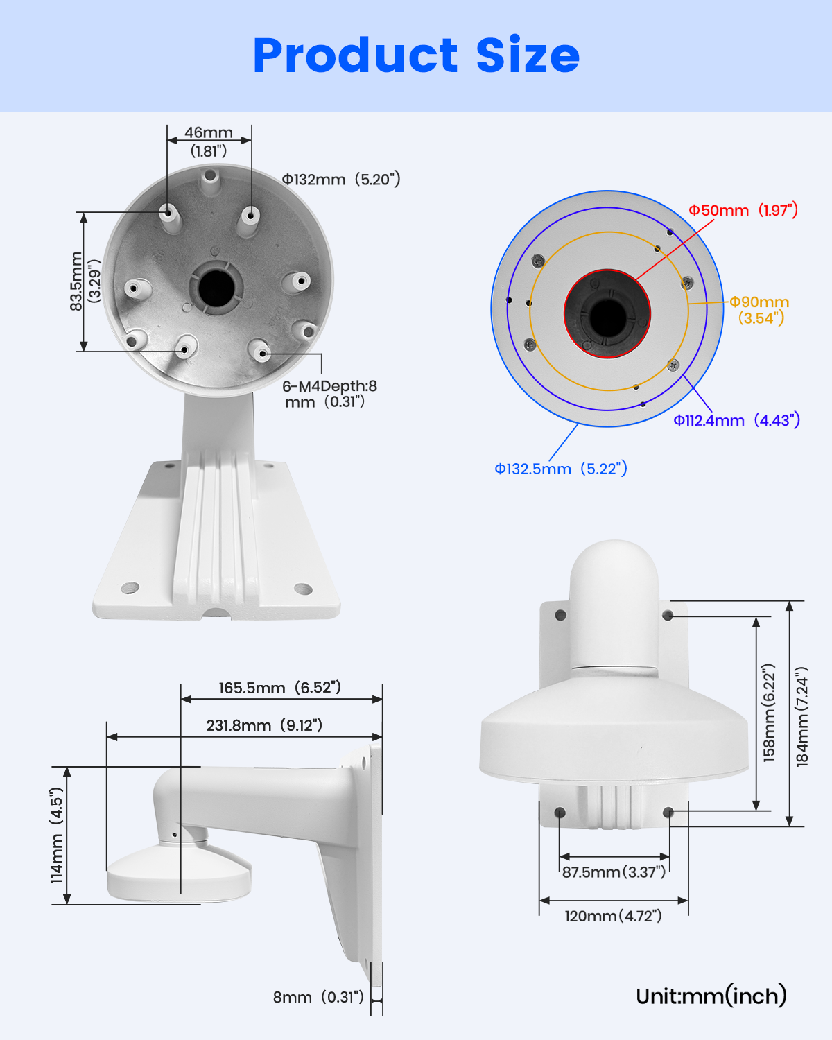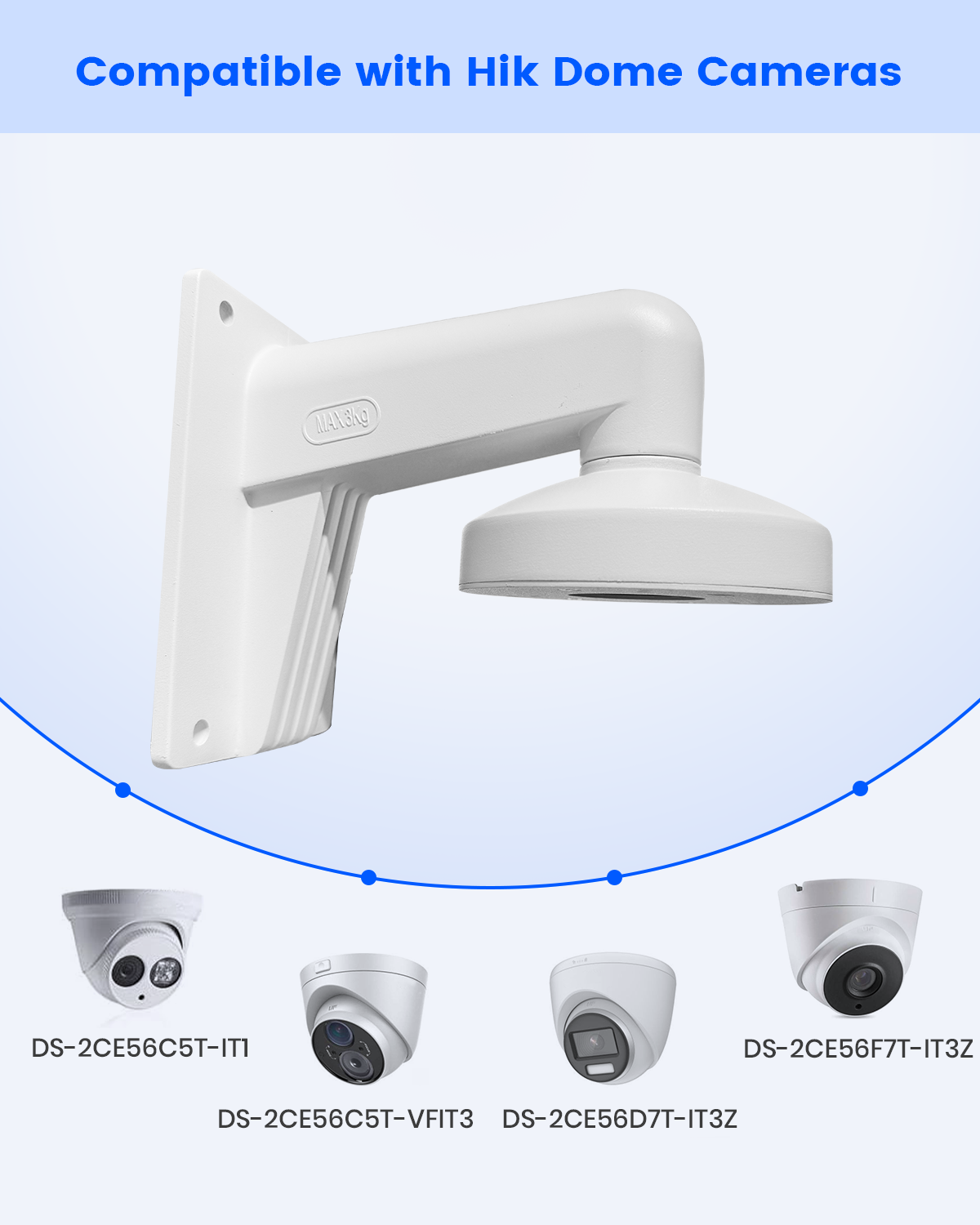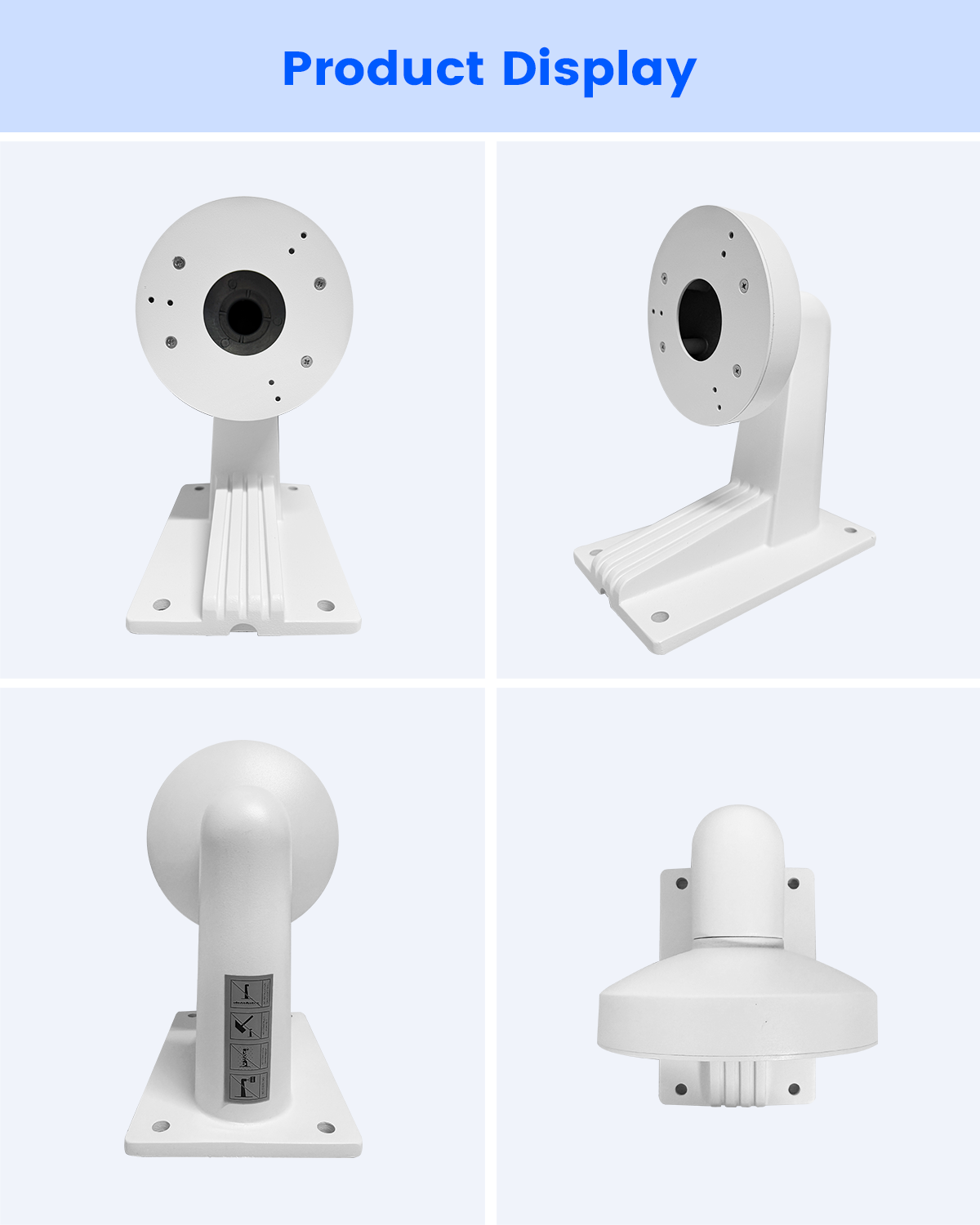 - Nota: Para garantizar un ajuste óptimo, verifique el tamaño y el patrón de orificios de montaje de su cámara con las especificaciones del soporte antes de comprar. Para un rendimiento óptimo, recomendamos usar este soporte específicamente con cámaras Hik. Se incluyen imágenes de referencia de instalación.